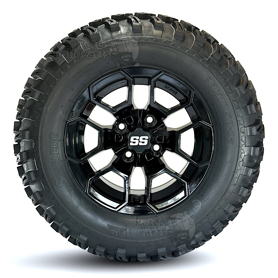 12″ Black Steel Golf Cart Wheels and 23″ Golf Cart Tires Combo – Set of 4