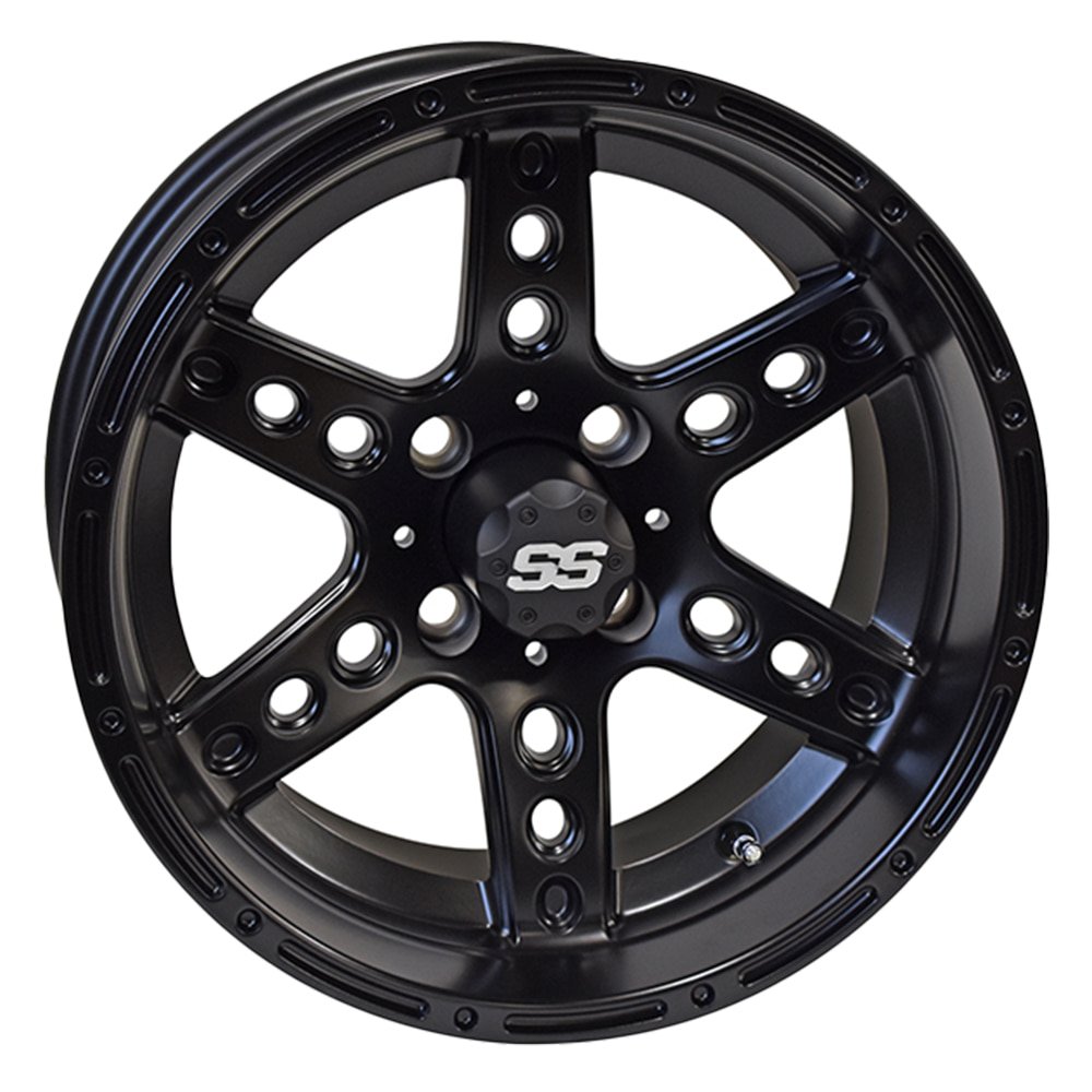 Cool new designs and great quality meet great value with every golf cart wheel Pete offers. Pete says all orders over $99 ship free freight in the US. Order your set today and save big! This specific golf cart wheel includes the center cap. (Universal fitment on and golf cart, this wheel will fit your Club Car, Columbia, EZ-GO, Gem Car, Tomberlin, Star Car and Yamaha golf cart.) Lug nuts sold separately.
