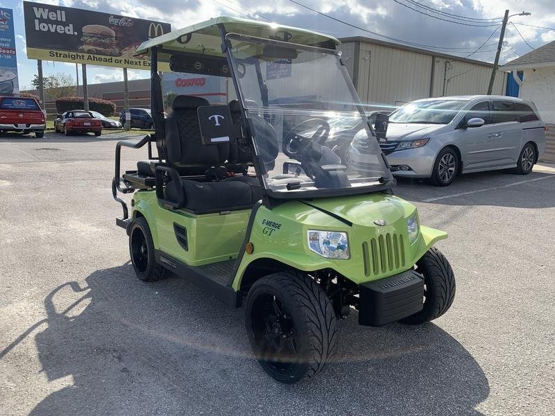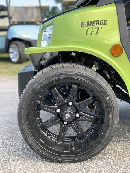 Introducing the NEW E-MERGE E2 GT, featuring 5 new refreshing metallic colors never seen on a Tomberlin, combined with a custom new Racaro-style black carbon Cool Touch seat, 14-inch steel belted radials with BLACK wheels, and an 8 speaker Bazooka sound bar as standard equipment. It’s the fastest production vehicle Tomberlin has ever offered, with the ability (if you’re willing) to zoom from 0 to 20 mph in 5 seconds – and to 25 mph in 6 seconds.