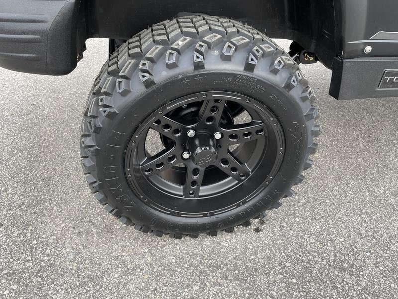 23 in. all-terrain + 14 in. custom black aluminum wheels