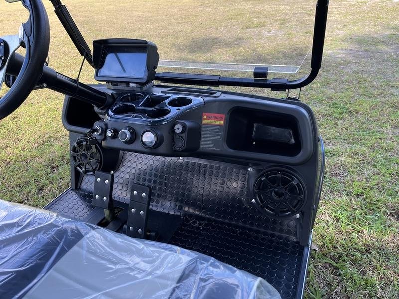 • 9-inch touchscreen with Speedometer display ,back-up camera ,Stereo system ,Bluetooth connection | Luxury 2 Tone Seats | Decorative Strip | Colored Decorative Wheel Trim | Dashboard with color-matching cupholder insert | Luxury Steering Wheel | Golf bag holder & sweater basket | Rearview Mirror | Horn | USB Charging Ports