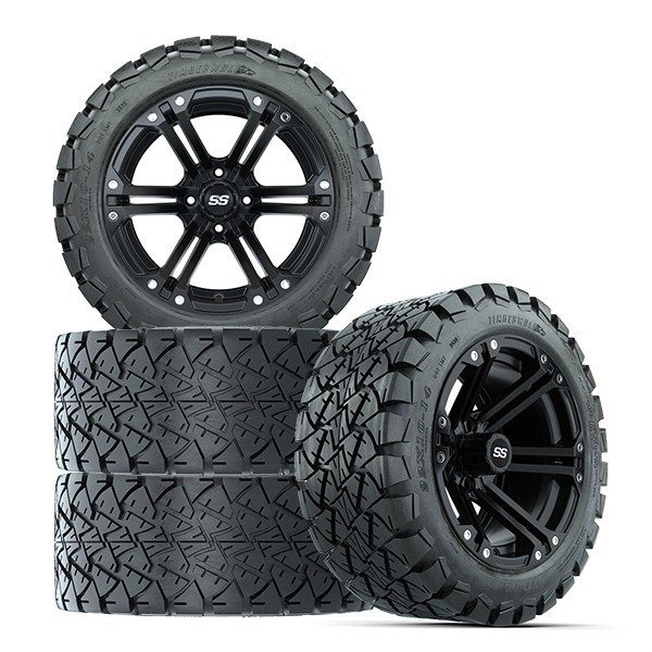 14″ Specter Matte Black Golf Cart Wheels and 22×10-14 GTW Timberwolf Tires – Set of 4