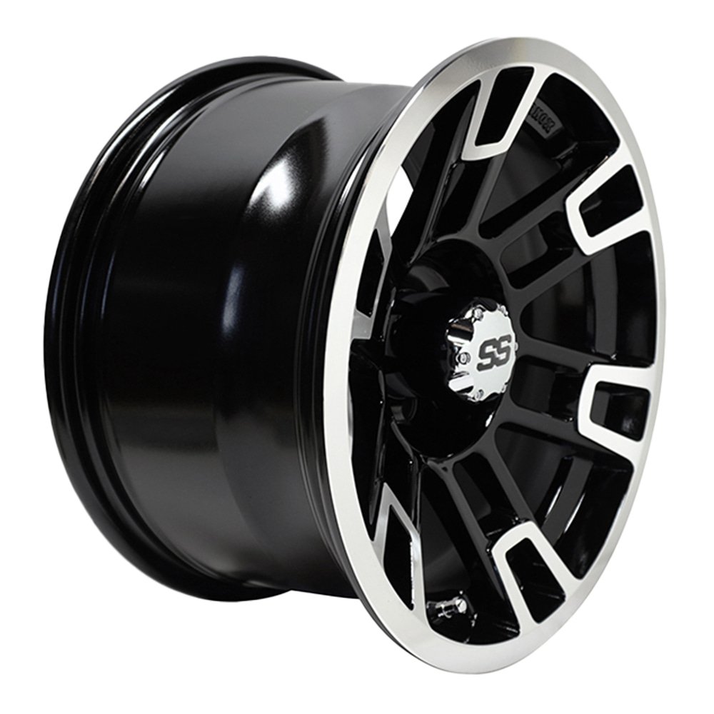 14″ Specter Black/Machined Golf Cart Wheels and 22×10-14 GTW Timberwolf Tires – Set of 4